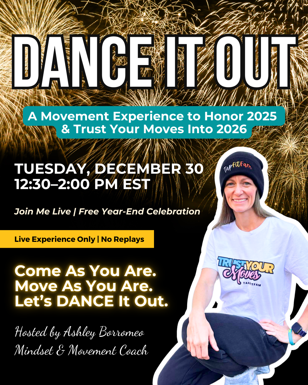 ✅ Prepare to move, reflect, and celebrate – Come as you are, move as you are, and let’s DANCE it out together!